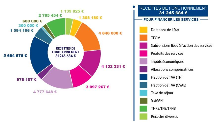Comme tout EPCI, la Communauté de communes bénéficie d’une fiscalité propre, c’est-à-dire qu’elle lève l’impôt sur les entreprises et les ménages. Le reste de son budget est financé notamment par des dotations de l’Etat et des emprunts.