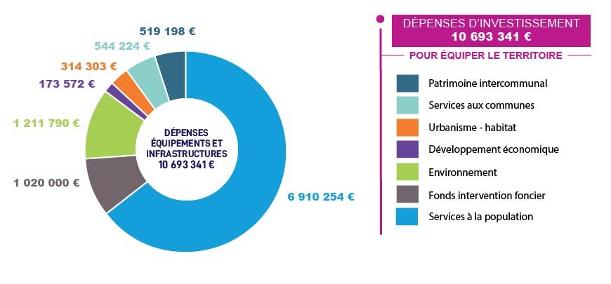 - les dépenses permettant d’équiper ou structurer le territoire avec par exemple la création d’équipements publics, l’aménagement de zones économiques … il s’agit des dépenses d’investissement.