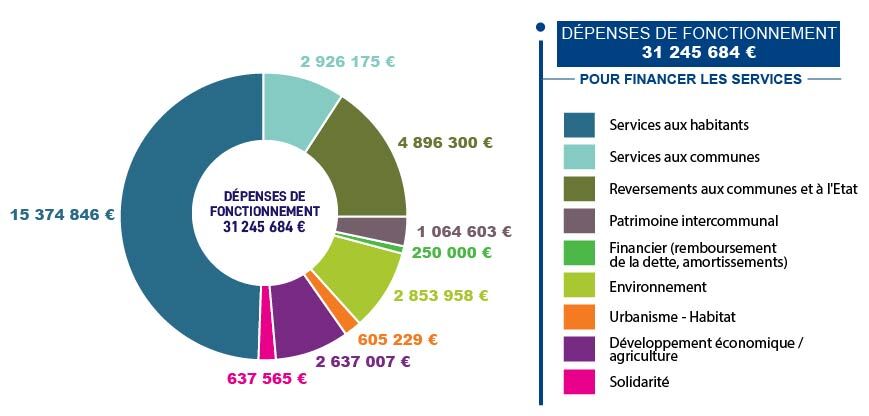 - les dépenses permettant de faire fonctionner les services aux habitants, comme par exemple les espaces d’accueil Petite enfance, l’accompagnement des entreprises, les actions pour valoriser le « manger local », l’accompagnement social … il s’agit des charges courantes de fonctionnement
